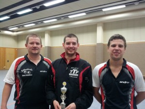 Krauschwitz setzte sich zunächst deutlich mit 4:0 gegen Bautzen durch und so waren alle Augen auf die entscheidende Partie zwischen Weißwasser und Eckartsberg gerichtet. Das aber auch kurz vor Weihnachten keine Geschenke verteilt werden, war allen klar und so mobilisierten beide Teams nochmal die letzten Kraftreserven um 22 Uhr und kämpften um jeden Punkt. Stengel hatte bereits Matchball gegen Müller, konnte diesen aber nicht nutzen und musste sich am Ende noch mit 2:3 geschlagen geben. Marschall hatte indes das nötige Quäntchen Glück, teilweise auch mehr als nur ein Quäntchen, gegen Drube und konnte sich mit 3:1 durchsetzen. In der Partie Beyer gegen Schönherr merkte man beiden Spielern die Müdigkeit an. Schönherr war dann doch den Tick frischer und konnte sich verdient mit 3:0 durchsetzen. Im Doppel erspielten sich Beyer/Stengel eine 2:0 Satzführung gegen Schönherr/Drube, bevor die Eckartsberger das Spiel ausgleichen konnten. Doch mit dem Bewußtsein, dass mit einer Niederlage im Doppel der Titel wohl futsch wäre, konnten Beyer/Stengel den fünften Satz für sich entscheiden und zum 2:2 ausgleichen. Im Anschluss konnte sich Marschall mit 3:0 gegen Müller durchsetzen und so war das Spiel Beyer gegen Drube von entscheidender Bedeutung für den Ausgang des gesamten Turniers. Beyer erspielte sich eine 2:0 Satzführung und hatte sowohl im dritten als auch im vierten Satz Matchball. Drube wehrte diese allerdings ab und erzwang den Entscheidungssatz. Der Verlauf des Fünften war dann nichts für schwache Nerven. Beyer lag schnell mit 1:7 zurück und die Chancen der TTF auf den Titel tendierten gegen Null. Doch Beyer mobilisierte noch einmal die letzten Kraftreserven und hatte bei 9:9 den Ausgleich geschafft. Bei eigenem Aufschlag machte Beyer dann die entscheidenden zwei Punkte und machte den größten Erfolg in der Vereinsgeschichte perfekt.