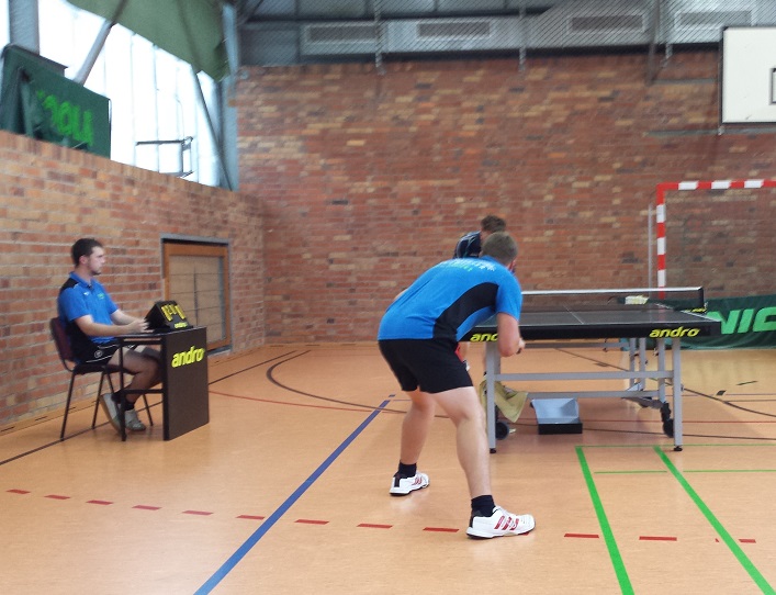 Die erste Einzelrunde eröffneten Marschall vs Wabnitz und Beyer vs Pfefferkorn. Beide mussten jeweils einen Satz in die Verlängerung, wo sie sich aber auch durchsetzen konnten und mit zwei 3:0 Erfolgen drehten die TTF das Spiel in ein 3:2. In der Mitte quälte sich Jung im Anschluss zu einem 3:2 gegen Bartosch, während Zilinsky zwar gute Akzente setzen konnte gegen Freudenberg, am Ende aber mit 1:3 unterlag. Die Führung zur Halbzeit sicherte dann Schmidt, der sich sicher mit 3:0 gegen Brauer durchsetzen konnte. Eggert merkte man dann doch noch etwas die nächtliche Anreise an und vielleicht auch ein bisschen gehemmt unterlag er Sauer, sodass die TTF mit einer 5:4 Führung in die zweite Runde gehen konnten.