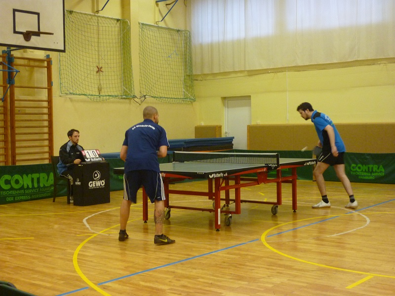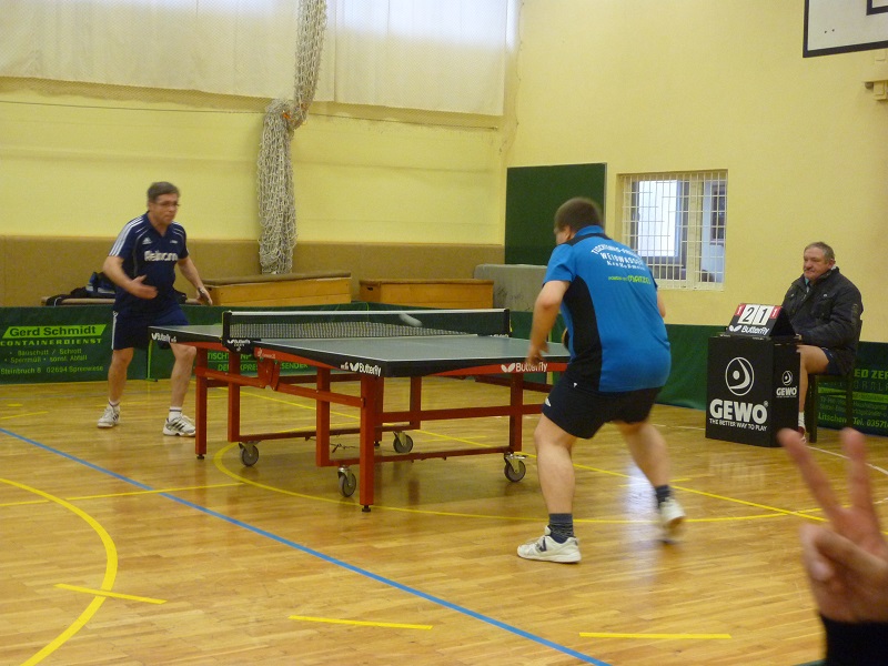 Für einen kurzen Lichtblick und eine mögliche Wende der Partie sorgte das obere Paarkreuz. Im ersten Spiel bekam es Eggert mit Tillig und Schmidt mit Gerke am Nachbartisch zu tun. Unsere Nr. 1, Robert Eggert, hatte mit seinem sicheren Offensivspiel gegen das Abwehrspiel von Tillig wenig Probleme und blieb ohne Satzverlust. Den kurzzeitigen Anschluss stellte dann Schmidt gegen Gerke her.