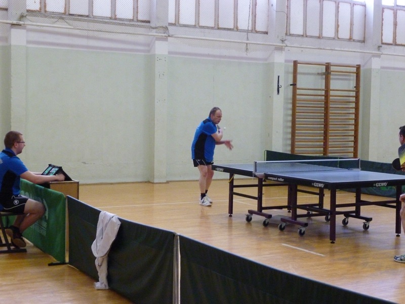 Unter tosendem Beifall unserer mitgereisten 1. Herrenmannschaft startete man in die erste Einzelrunde. Diese brachte die Partien Eggert/Koschkar und Sohrmann/Zerna. Eggert konnte sich anfangs gut absetzen. Koschkar fand aber nach und nach besser ins Spiel und glich kurzzeitig für sein Team aus. Am Nachbartisch triumphierte dann aber auch unsere Nr.1 gegen Zerna, der sich nur im vierten Satz behaupten konnte.