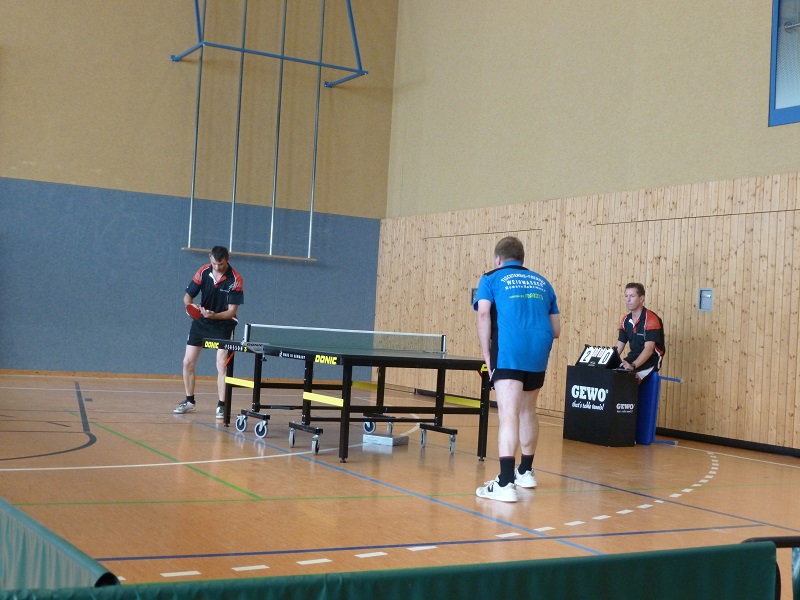 Die Doppel verliefen ähnlich wie die der vergangenen Woche. Das D1 der Gastgeber Horter/Haupt setzte sich mit 3:1 gegen Sohrmann/Drung durch, wobei sich letztere den Auftaktsatz und auch fast den zweiten Satz für sich entscheiden konnten. Am Nebentisch traten zeitgleich Baseler/Roßmeisl gegen Kölbel/Peukert an. Die Gästgeber erwischten den besseren Start, aber das D1 der 2. Herren gleichte schnell wieder aus. So verliefen auch die Sätze drei und vier und so musste der 5. Satz die Entscheidung bringen. Unerwartet schnell gerieten Baseler/Roßmeisl mit 1:5 in Rückstand, standen anschließend aber wieder besser und glichen rasch aus und gingen sogar in Front. Ein paar vermeintlich leichte Fehler brachten die Gastgeber dann jedoch zum 10:8 und anschließend zum 11:9. Dieser „leicht“ vergebene Punktverlust sollte sich später noch rächen. Den erste Punkt wurde dann vom neu aufgestellten D3 Sange/Thomas eindrucksvoll eingefahren. Sie setzten sich klar mit 3:0 gegen Höhne/Mühle durch und erlaubten sich selbst nur wenige Fehler im Offensiv-Spiel.