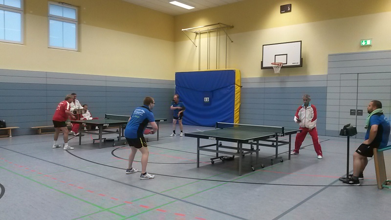 Im Spiel der Einser konnte sich Sohrmann erneut behaupten und siegte mit vielen, vielen hart umkämpften Bällen in vier Sätzen. Am Nachbartisch konnte Baseler nicht genügend Druck gegen Knippa aufbauen und unterlag recht deutlich. Ähnlich erging es Roßmeisl gegen Wieczorek. Auch hier konnte der Weißwasseraner sein Spiel nicht aufziehen und erlaubte sich zu viele Fehler im Spielaufbau. Beim Stand von 8:4 gaben sich Sange gegen Kinne und auch Drung gegen Hörenz anschließend nicht geschlagen. Sange unterlag noch im ersten Satz, konnte sich die beiden folgenden Sätze jedoch sichern und hatte im vierten Satz mehrfach die Chance den Sack zu zumachen. In diesem Satz sollte jedoch noch keine Entscheidung fallen. Denn Kinne errang mit 22:20 den Satzausgleich und somit war die Entscheidung auf den fünften Satz vertagt. Dieser verlief ähnlich. Keiner konnte sich entscheidend absetzen und so fiel die Entscheidung auch erst in der Verlängerung. Diesmal behielt Sange aber den kühleren Kopf und setzte sich mit 12:10 durch. Ähnlich knappe Sätze lieferte sich Drung gegen Hörenz. Ein ständiges Auf und Ab und nach 12:14/11:6/8:11 und 14:12 fiel auch hier die Entscheidung im letzten Satz. Hier führte der Weißwasseraner bereits zum Seitenwechsel und gab Diese bis zum Ende auch nicht mehr ab. Nun hatte Thomas die schwere Aufgabe die Chance auf den Punktgewinn zu wahren. Er erwischte einen guten Start gegen Säuberlich, konnte sich im ersten Satz aber dennoch nicht durchsetzen. Dies gelang ihm erst in Satz zwei.