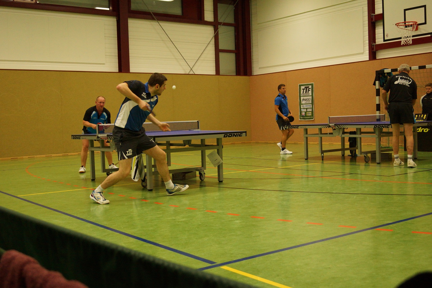 Zu Beginn der zweiten Einzelrunde sollte dann auch die Vorentscheidung fallen. Beyer machte den Anfang gegen Friedrich und konnte in der hitzigen Partie am Ende kühlen Kopf bewahren und sich mit 3:1 durchsetzen. Marschall, auch im zweiten Spiel nicht sonderlich gut, konnte gleich nachlegen und bezwang Dittrich mit 3:0. Dieses 7:4 sollte eigentlich Sicherheit geben, doch so richtig war dies nicht zu spüren. Während Stengel 0:3 gegen Jantsch unterlag lieferte sich Jung ein Duell mit Pohl, E, das wohl am besten mit dem Wort ängstlich zu beschreiben ist. Keiner konnte wesentliche Akzente setzen in einem Spiel, das von vielen Fehlern geprägt war. Am Ende machte aber Jung zwei Pünktchen mehr im Entscheidungssatz und konnte die TTF mit 8:5 in Führung bringen. Den Sack zu machte dann auch gleich Zilinsky. Mit einem recht souveränen 3:0 gegen Schneider konnte er den TTF den neunten Punkt und damit den ersten Sieg der Saison sichern. Zum Abschluss musste sich Eggert noch gegen Abwehrmann Pohl, M erwehren und man merkte ihm die stressige Woche an. Am Ende hieß es 1:3, aber viel wichtiger 9:6 für die TTF.