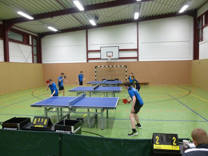 Beide Mannschaften ihre Stammmannschaft auf, sodass abermals viele spannende Spiele zu erwarten waren. Obwohl man genügend Zeit hatte, um sich warm zu spielen, verpassten Daniel und Jonas die ersten Sätze völlig. Beide unterlagen überraschend deutlich mit 0:3. Nur Willi Ott konnte sich gegen Sahra Schwabe in drei Sätzen klar durchsetzen.
